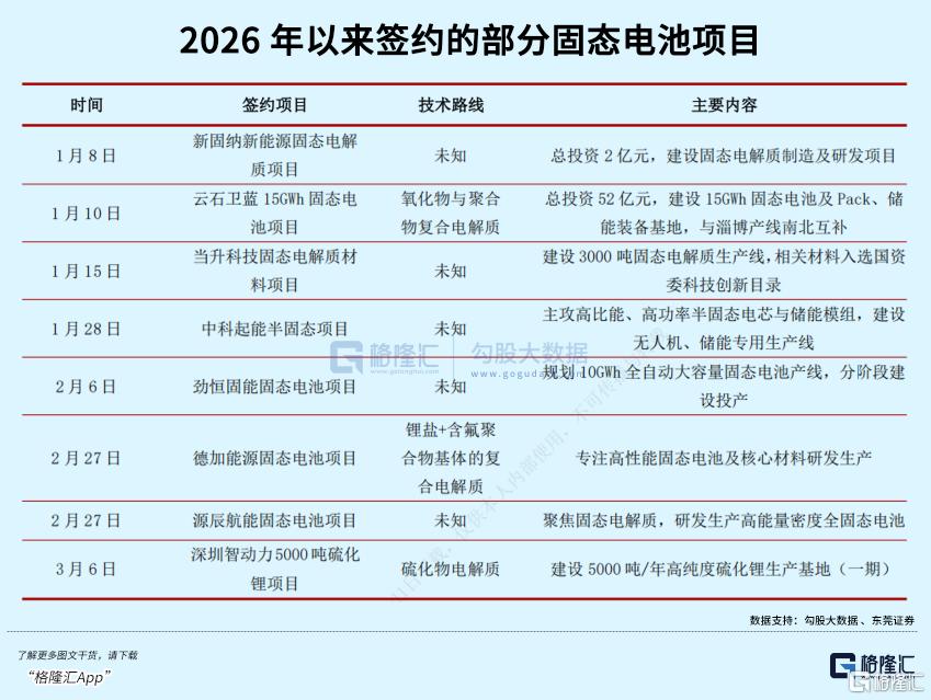 2026年一季度,国内就有超过16个固态电池及材料项目投产、开工或签约,产业链的热度已经肉眼可见。