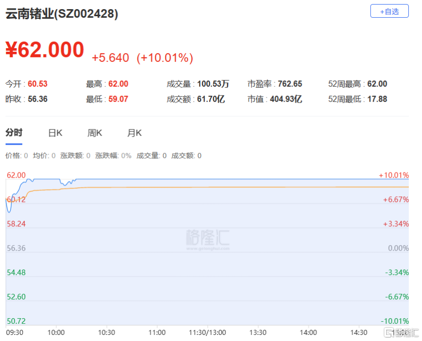 云南锗业:今日涨停,偏离值9.63%,换手率15.39%,成交额61.70亿。龙虎榜数据显示,机构净买入3915.88万元,深股通专用席位净买入3.09亿元。