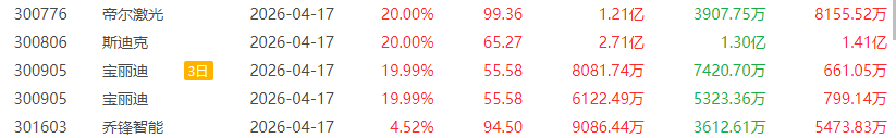 世嘉科技:今日涨停,偏离值9.63%,换手率13.87%,成交额16.29亿。龙虎榜数据显示,机构净买入1.04亿元,屠文斌净买入3128万元。