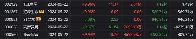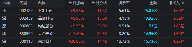 佛山系:净买入TCL中环1.569亿元