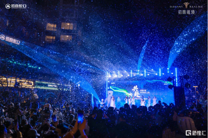 舞台上,冰雪芭蕾舞剧优雅上演,舞者足尖流转,以极致肢体语言诠释艺术与生活交融的浪漫想象。穹顶之上,流光漫舞,不仅营造出梦幻氛围,更将前海澎湃发展的时代情绪与招商雍境的产品温度紧密相连。