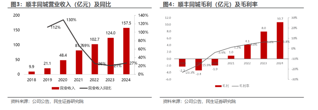 今年5月以来,顺丰同城的股价一路狂飙,涨幅一度超过130%,业绩也表现亮眼。根据顺丰同城2025年半年报,其实现营收102.36亿元,同比增长48.8%,半年度营收首次破百亿;净利润同比增长120.4%至约1.37亿元,创历史新高。