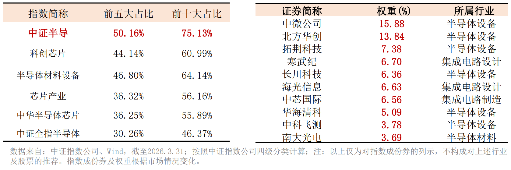 据悉,该指数前十大集中度远超科创芯片、半导体材料设备等同类指数,周期传导性较强,因此反弹锐度更强,或在新一轮半导体上行周期中更具弹性。