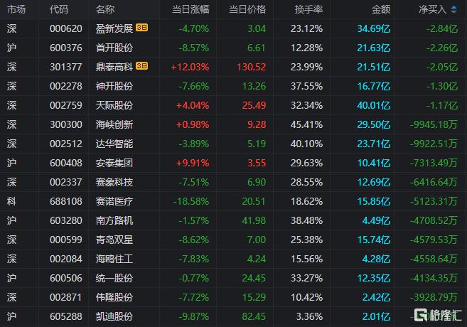 龙虎榜单日净卖出额前三为首开股份、神开股份、天际股份,分别为2.26亿元、1.3亿元、1.17亿元。