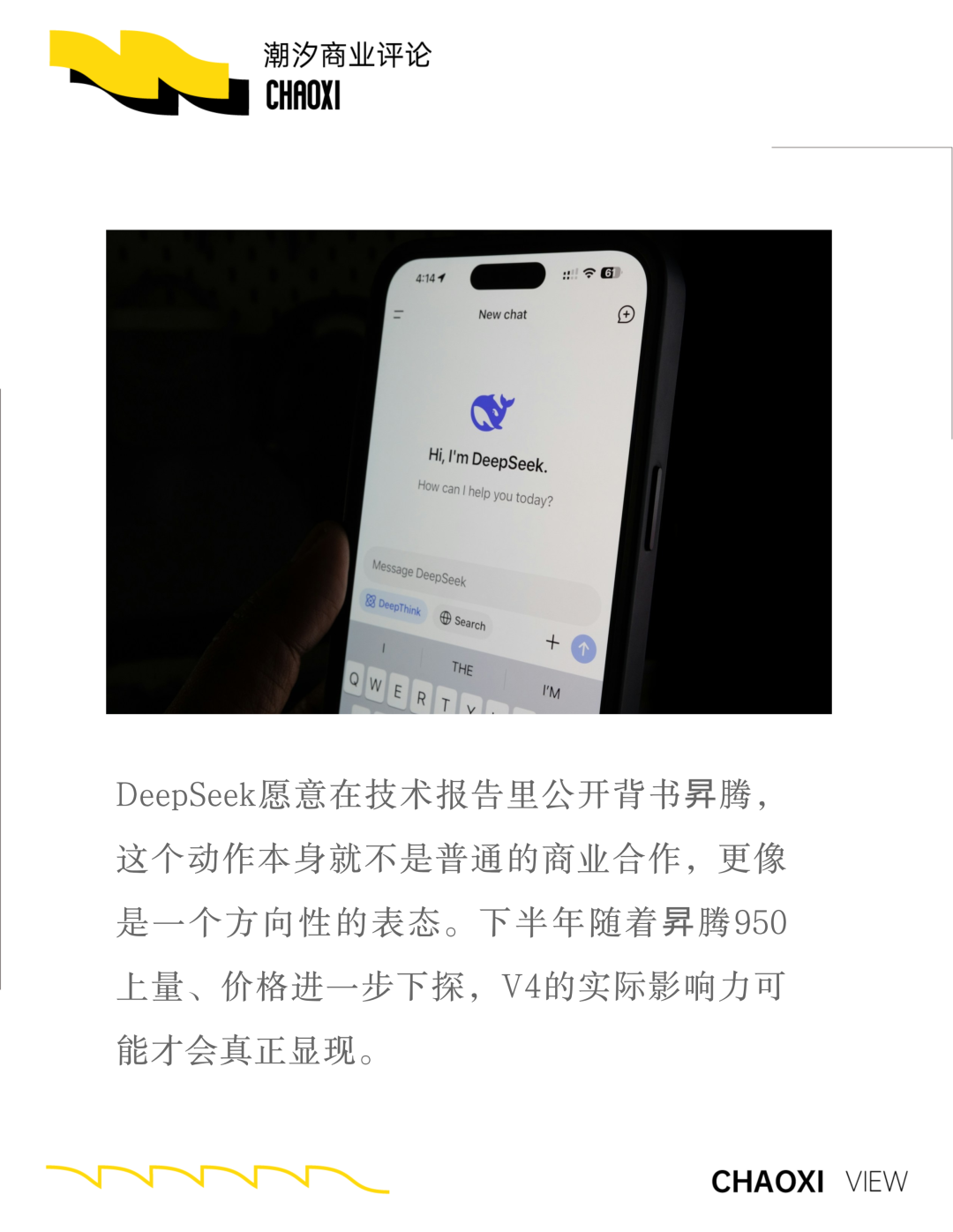 在英伟达出口管制持续收紧的背景下,这次技术协同释放的信号很清晰:DeepSeek在主动构建一条不依赖英伟达的算力通道。这件事的战略意义,比V4本身的产品发布要深远得多。