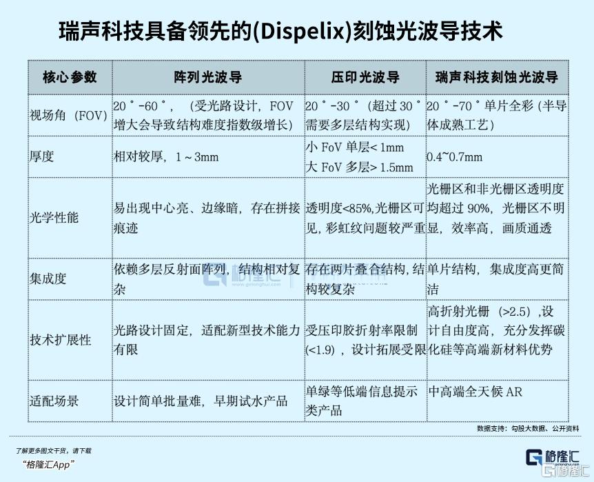 公司技术路径的含金量很高。在技术路线方面,能够提供光波导-光引擎-推/拉透镜-眼动追踪-电致变色端到端光学解决方案。公司掌握了半导体刻蚀(衍射)光波导能力,这条路线整体上优于压印和阵列波导,更适合中高端全天候AR。