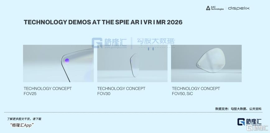 核心参数上,碳化硅基50°超大FOV、重量仅有3克+、色偏Δu’v’<0.02,这些指标都处于行业第一梯队。更重要的是,公司不是只卖一个零件,而是具备一站式方案能力,除光学部件外还能够提供扬声器、麦克风等多项产品。这种方案能力,会显著提升在头部客户中的卡位深度。