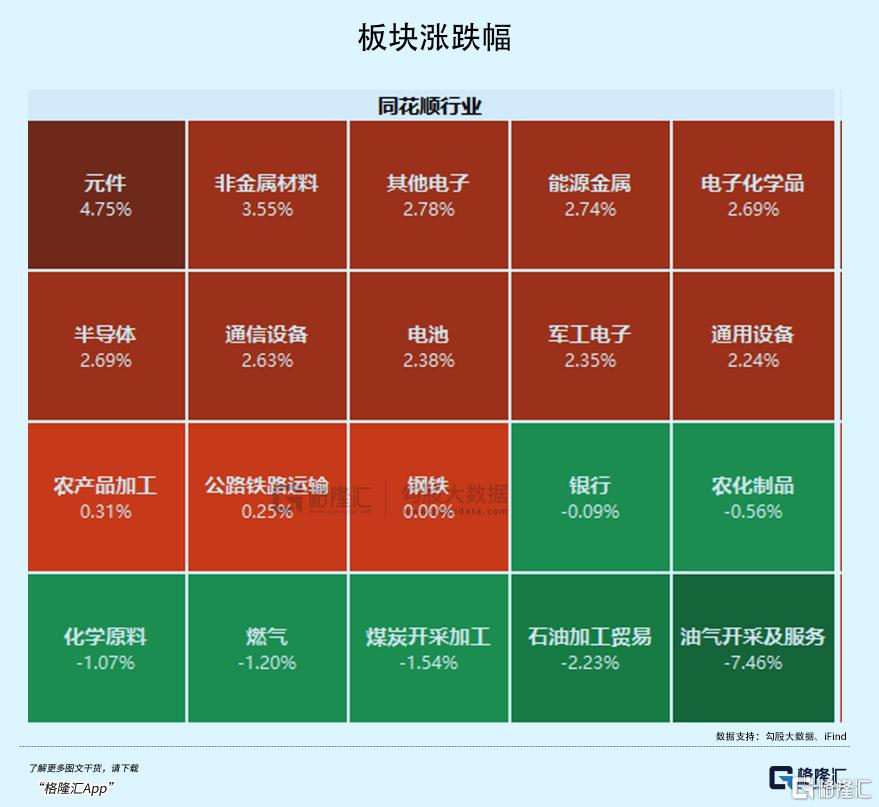 板块方面,光纤、PCBAI科技成长股集体大涨,早前因避险情绪高涨的石油天然气与能源设备板块,则随着油价回落而集体走弱。