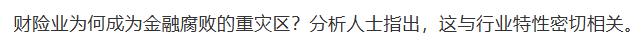 从已查处的案件来看,保险业务的全链条都可能存在腐败风险。财险公司有不少面向企业客户的业务,同时倚重中介渠道,对于掌握资源的保险高管而言,暗箱操作谋利有更加便利的条件。
