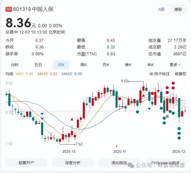 2025年12月1日,资本市场用股价大跌投票,A股中国人保收盘下跌近5%,港股中国人民保险集团、人保财险盘中均一度跌幅超6%。