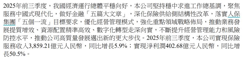 2025年前三季度,人保财险实现保险服务收入3859.21亿元,同比增长5.9%,占到了人保集团总收入的89%。这一数据凸显了人保财险在集团内的核心地位,也解释了为何此次事件会引起市场如此高度的关注。