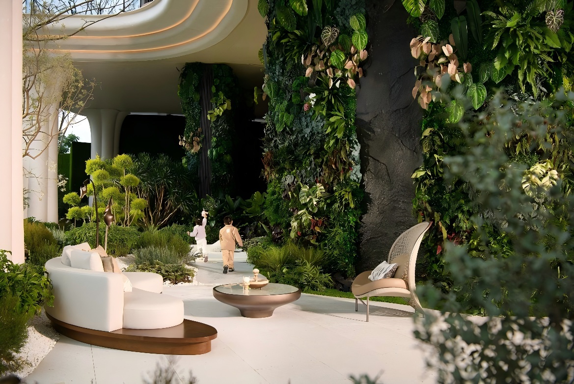 让建筑、生活与自然无界融合的全维立体景观,是贝宸S1另一项特色。基于大数据洞察与潜在客户调研,项目早期确立了“风景里的家”的景观设计目标,并对主入口、下沉庭院、开敞式架空层、单元大堂及第五立面(建筑屋顶面)等空间进行立体景观设计,引入两百余种特色植物、千余吨天然石材,让贝宸S1的景观体验充满“虽由人作,宛自天开”的自然野奢感。