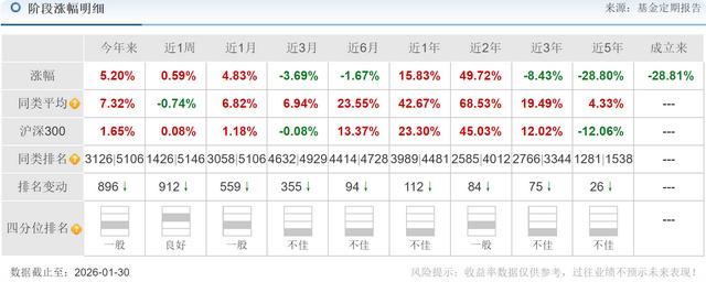 2023年1季度持有11.00万股,2023年2季度持有11.00万股,2023年3季度持有10.00万股,2023年4季度持有10.80万股。2024年1季度持有9.80万股,2024年2季度持有10.00万股,2024年3季度持有10.20万股,2024年4季度持有10.00万股。2025年1季度持有11.00万股,2025年2季度持有11.00万股,2025年3季度持有10.00万股,2025年4季度持有5.75万股。然而,在该基金持有期间,2021年1月4日-2026年1月30日股票价格下跌了29.88%。