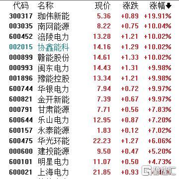 电力股表现强势,珈伟新能、南网能源、涪陵电力、协鑫能科等多股涨停,甘肃能源、乐山电力等跟涨。