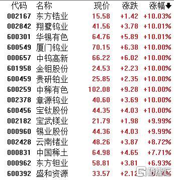小金属概念持续走高,东方锆业、翔鹭钨业、华锡有色、厦门钨业、中钨高新、金钼股份等十多只个股涨停。