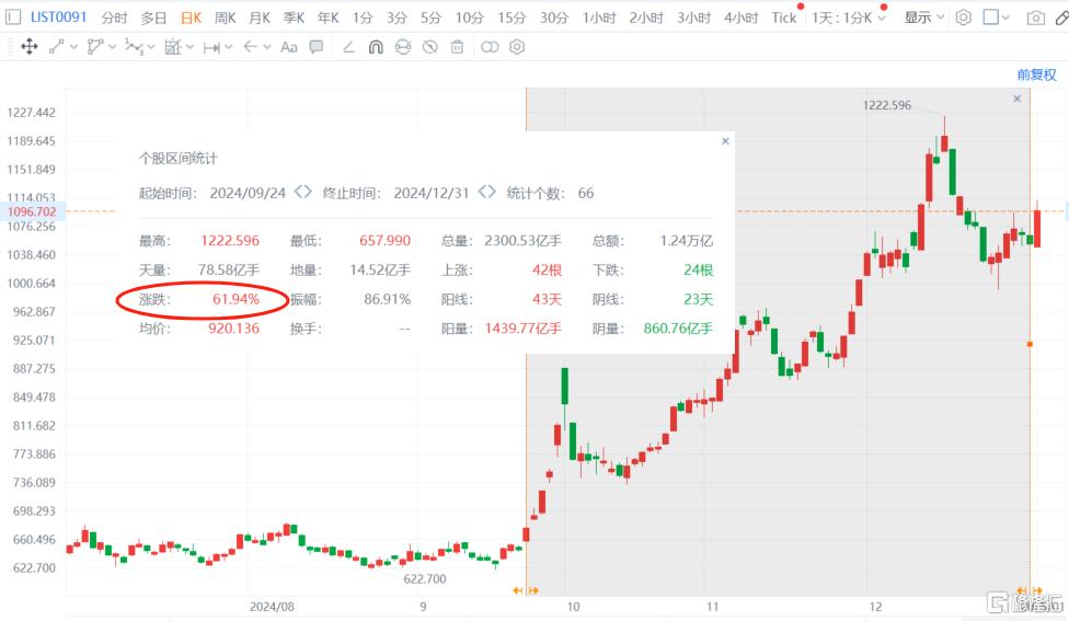 “9·24”行情以来,截至12月31日收盘,零售板块的累计涨幅超61%。