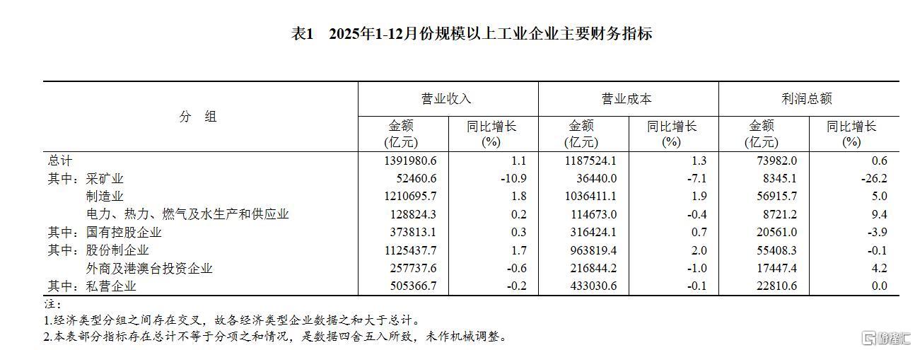 1月27日,国家统计局公布2025年工业企业利润数据。