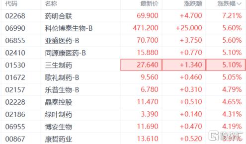 港股创新药概念同样走强,截至发稿,药明合联大涨超7%,亚盛医药、三生制药、歌礼制药、乐普生物、晶泰控股等纷纷上涨。