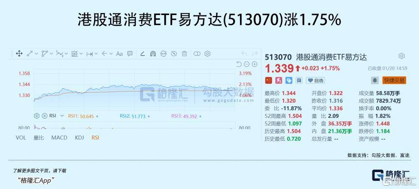 其中,港股通消费ETF易方达(513070)涨1.75%。