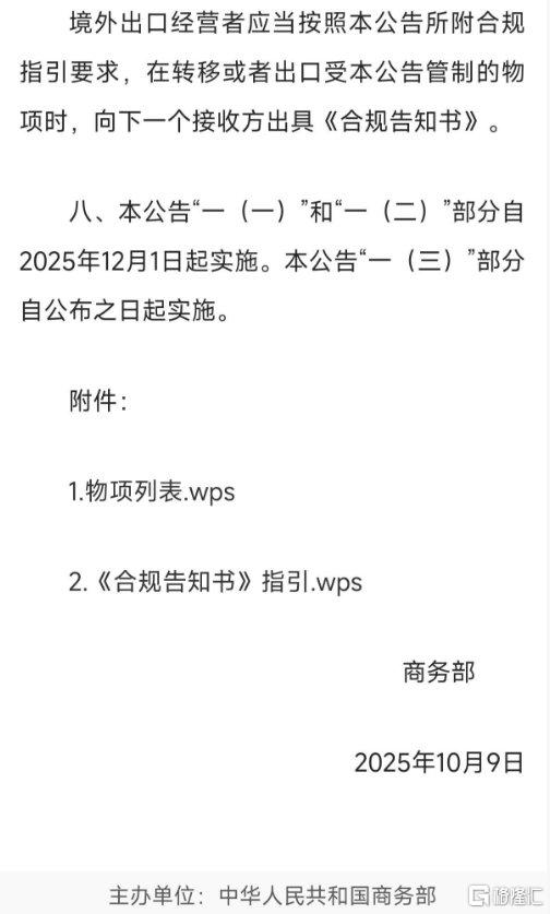 商务部在10月9日发布的稀土出口管制公告中,首次将其附件文档格式由惯用的Word或PDF改为WPS格式,还强调申请文件须以中文提交。