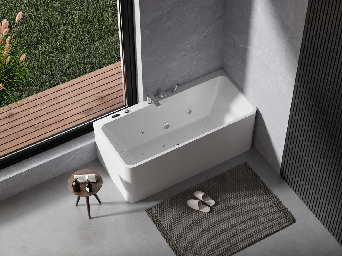 Trento特兰托独立式人造石按摩浴缸巧妙融合科技与经典美学设计。Air System气泡按摩系统位于浴缸底部,搭载8个气泡按摩喷嘴,通过独立防水遥控器调节气泡强度,适合日常洗浴放松需求。浴缸整体采用创新型DuroCast人造石材质,具有坚固耐用、触感舒适的特性。其具备防滑表面和优质的保温性能,抗老化不发黄,硬度高,耐磨性强,不易开裂,同时兼具耐化学腐蚀、耐燃烧及耐冲击等卓越表现。这款浴缸能与任何卫浴风格无缝搭配,更能确保日常使用中的长久稳定与易维护。
