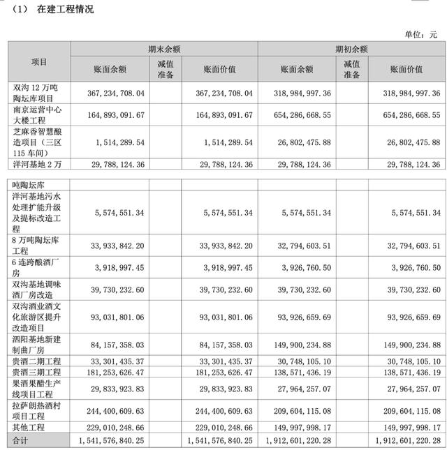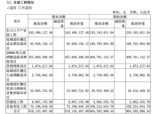 现在市场萎缩成这样,还有一堆企业账上有一堆的在建工程。比如洋河就有一堆的厂房、酒窖工程在建: