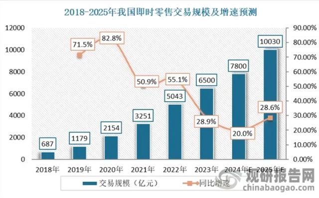 商务部国际贸易经济合作研究院发布的《即时零售行业发展报告(2024)》显示,2023年我国即时零售市场规模达6500亿元,同比增长28.89%;预计2030年我国即时零售市场规模将超2亿元,订单量持续增长。
