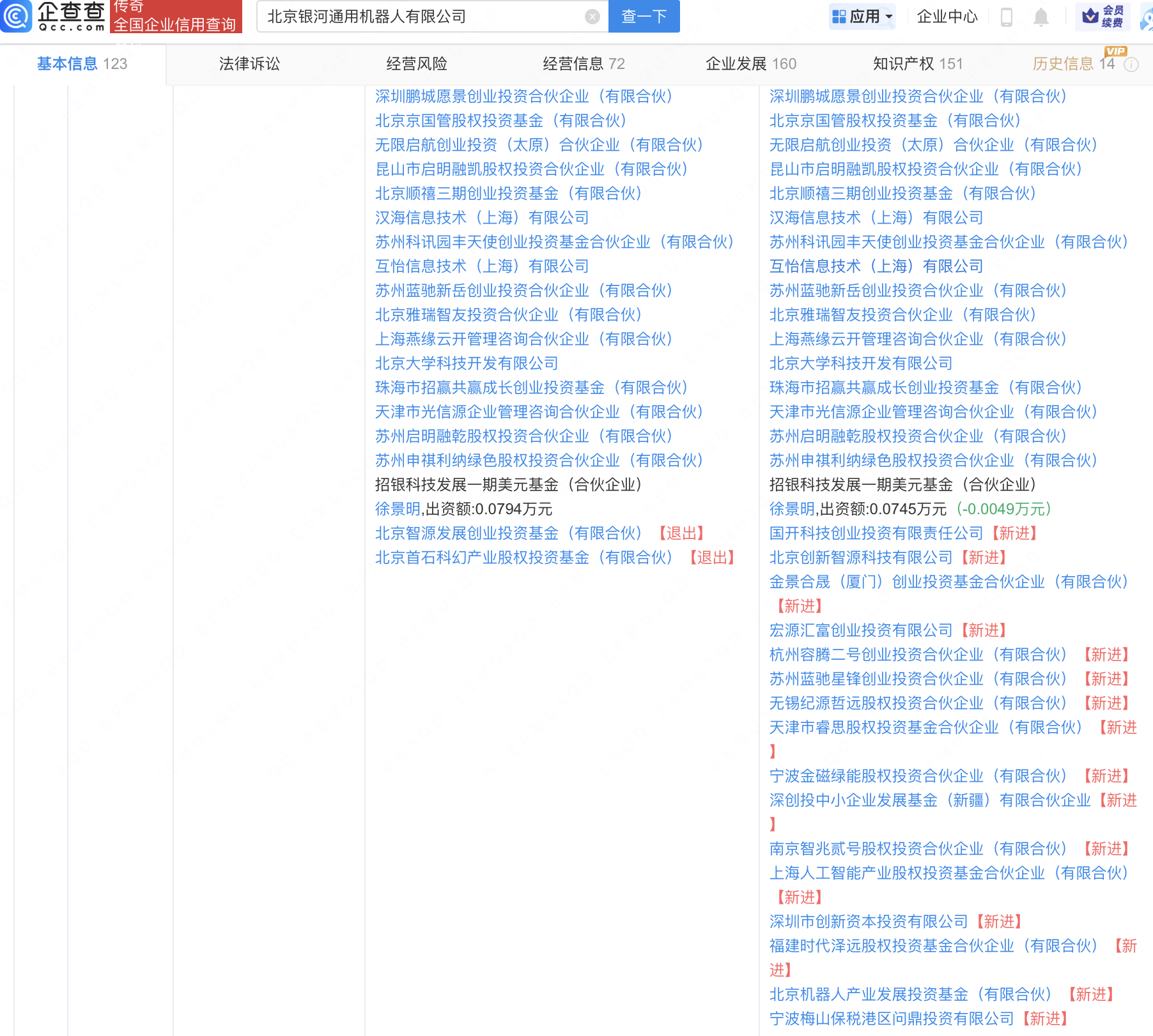 企查查APP显示,近日,北京银河通用机器人有限公司发生工商变更,新增宁德时代(300750)全资子公司宁波梅山保税港区问鼎投资有限公司、北京机器人产业发展投资基金(有限合伙)等为股东,同时注册资本增至42.26万元。企查查信息显示,该公司成立于2023年,经营范围包含:智能机器人的研发;智能机器人销售;工业机器人制造;工业机器人销售等。公开信息显示,银河通用机器人专注于具身多模态大模型通用机器人研发。