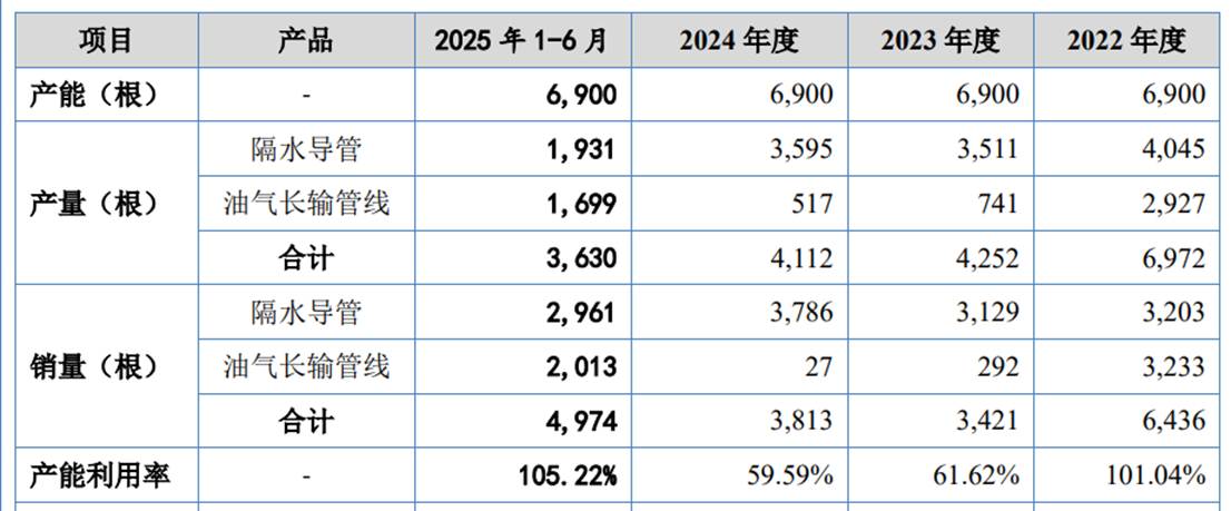 此次上市,祺龙海洋计划募集约3.82亿元资金,用于建设“高性能大口径隔水导管生产项目”。该项目声称建成后可将隔水导管最大口径提升至1600毫米,并形成年产7500根的新增产能。然而,结合该公司现有的生产模式与历史产能利用率,其大规模扩产的必要性,无疑被打上了一个问号。