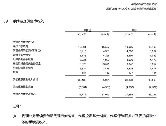 从中信银行2025年度报告看,代理业务手续费、理财业务手续费、托管及其他受托业务佣金、结算与清算手续费均高于上年,境外平台财富管理相关收入和私行业务收入亦保持增长。由此可见,中信银行全年收入并非只靠利息净收入单独支撑,中间业务收入与境外平台经营结果已对集团收入和盈利形成补充。