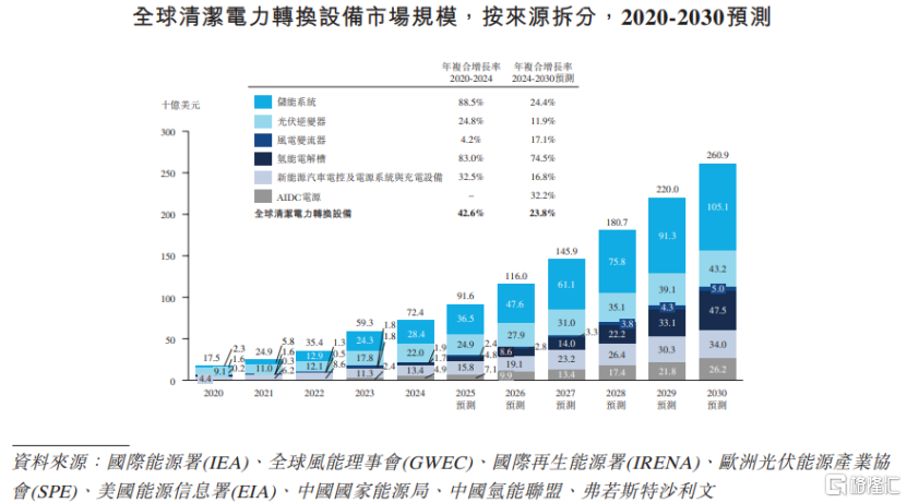 在全球低碳目标和能源结构调整的推动下,全球清洁电力转换设备市场规模从2020年的175亿美元跃升至2024年的724亿美元,年复合增长率达42.6%,预计到2030年将增长至2609亿美元,2024年至2030年的年复合增长率放缓至23.8%。