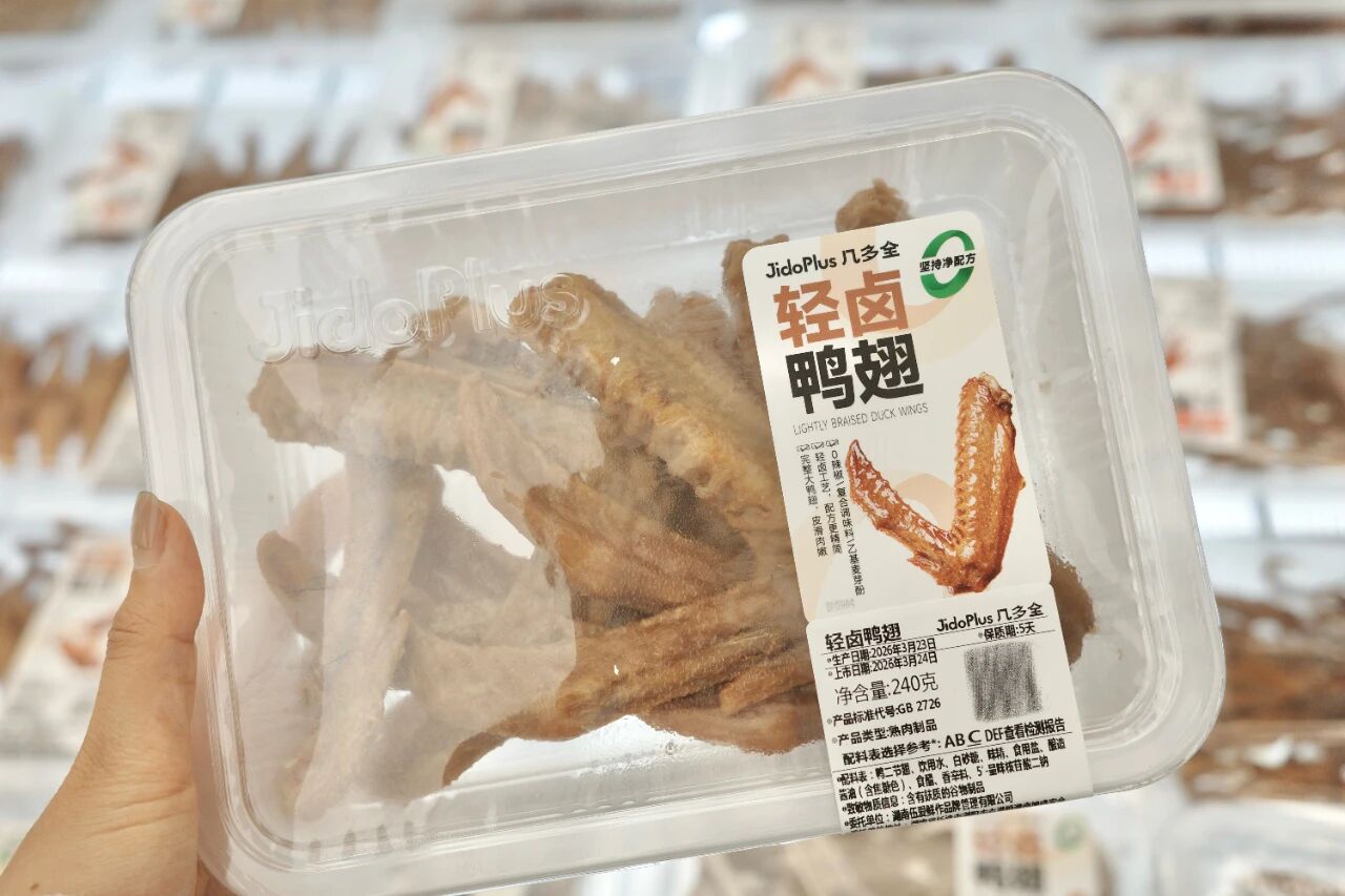 店内货架上方,“0防腐剂 0植脂末 净配方 真新鲜”“这里,您无需查看配料表”等标语格外醒目。与普通预包装食品相比,几多全多数商品的保质期明显更短,如轻卤鸭翅、盐焗鸡翅尖的保质期仅有5天,柠檬去骨凤爪、牙签牛肉的保质期为7天,而藜麦玉米脆、脆脆荞麦片、咔咔虾片等膨化零食保质期也多在60天左右。