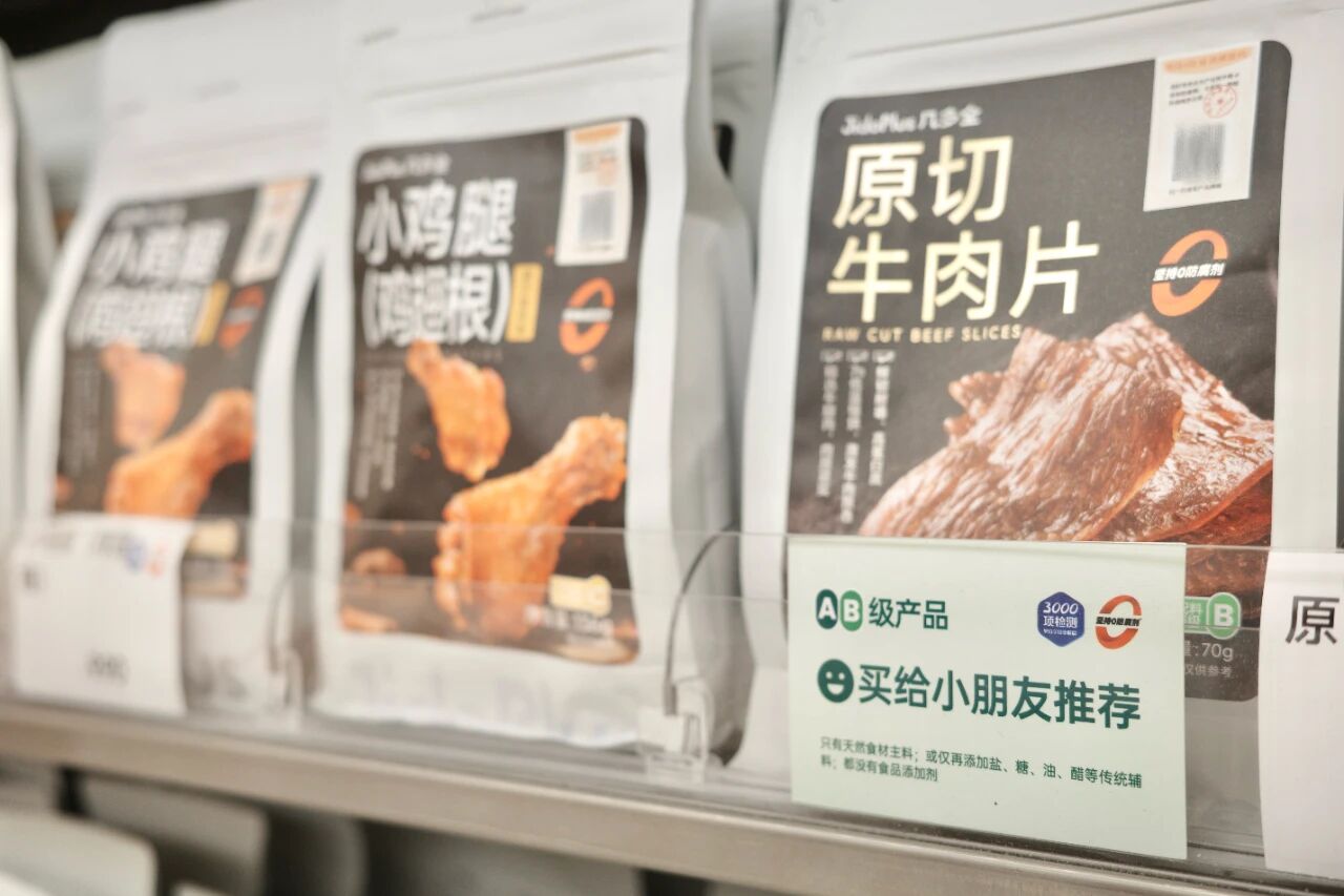 值得注意的是,几多全每款产品均附有检测报告二维码,供消费者扫码查验;且标注了细分等级。据了解,几多全在行业内首创了“食品配料净化等级表”,按配料复杂程度与添加剂使用情况划分为A至F六个等级。其中,A级产品仅用天然食材、零添加,B级产品以天然食材为主,仅添加盐、糖、油或醋、酵母等传统辅料。店内标签特别标注“AB级产品,买给小朋友推荐”。