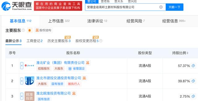 天眼查App信息显示,金岩高新成立于2012年10月,前称为安徽金岩高岭土科技有限公司。目前,该公司的注册资本为7289.4316万元,法定代表人为张矿,主要股东包括淮北矿业集团、淮北建投等。
