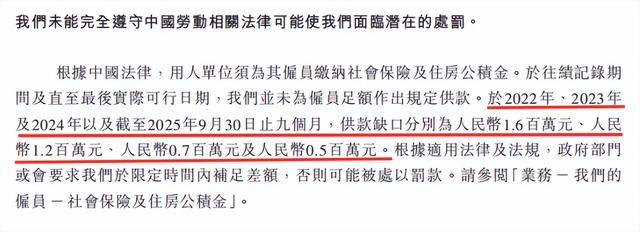 这种“轻正式、重兼职”的用工模式,虽在报表上有效压降了薪酬总额与社保公积金相关支出,但也引发合规隐忧。招股书显示,2022年至2025年9月,公司累计欠缴社保及公积金约400万元。