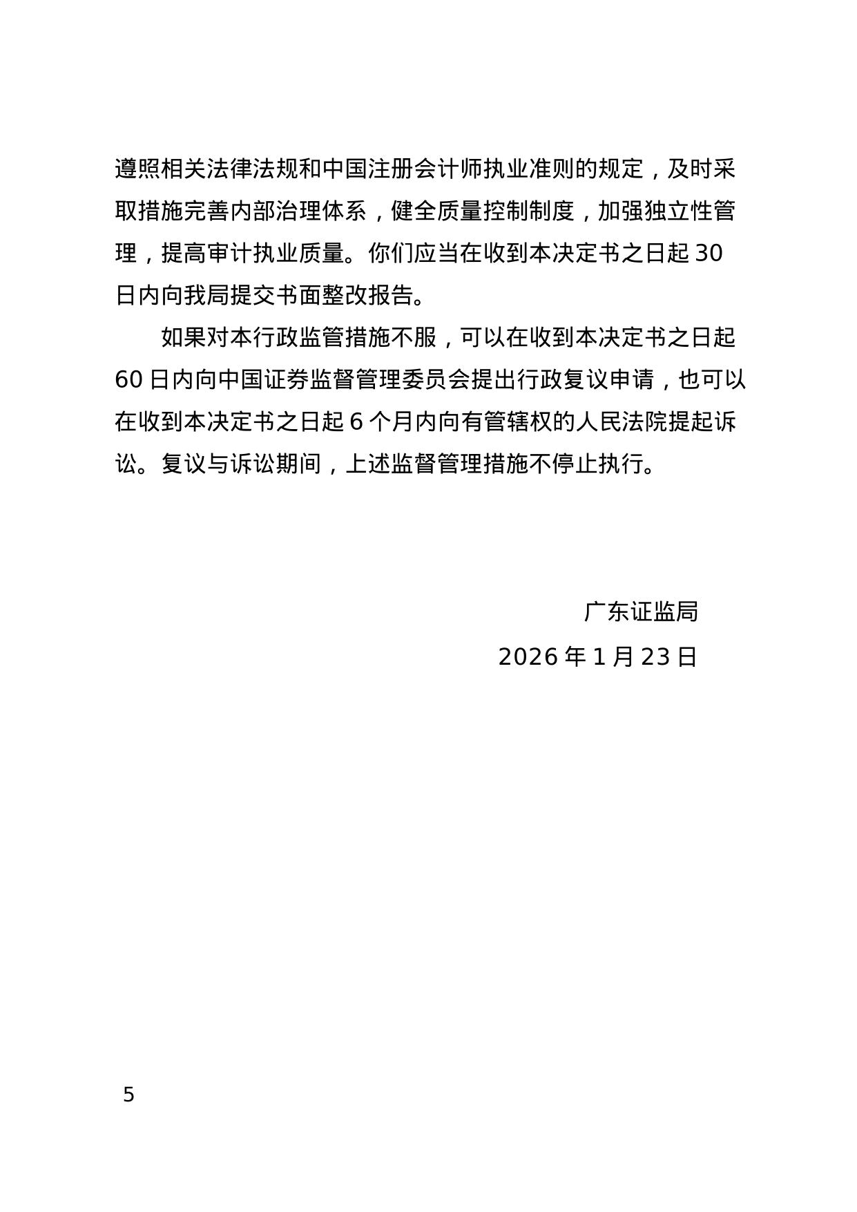 蓝鲸新闻1月27日讯,近日,广东证监局发布了行政监管措施决定书,剑指广东司农会计师事务所(特殊普通合伙)及相关责任人。