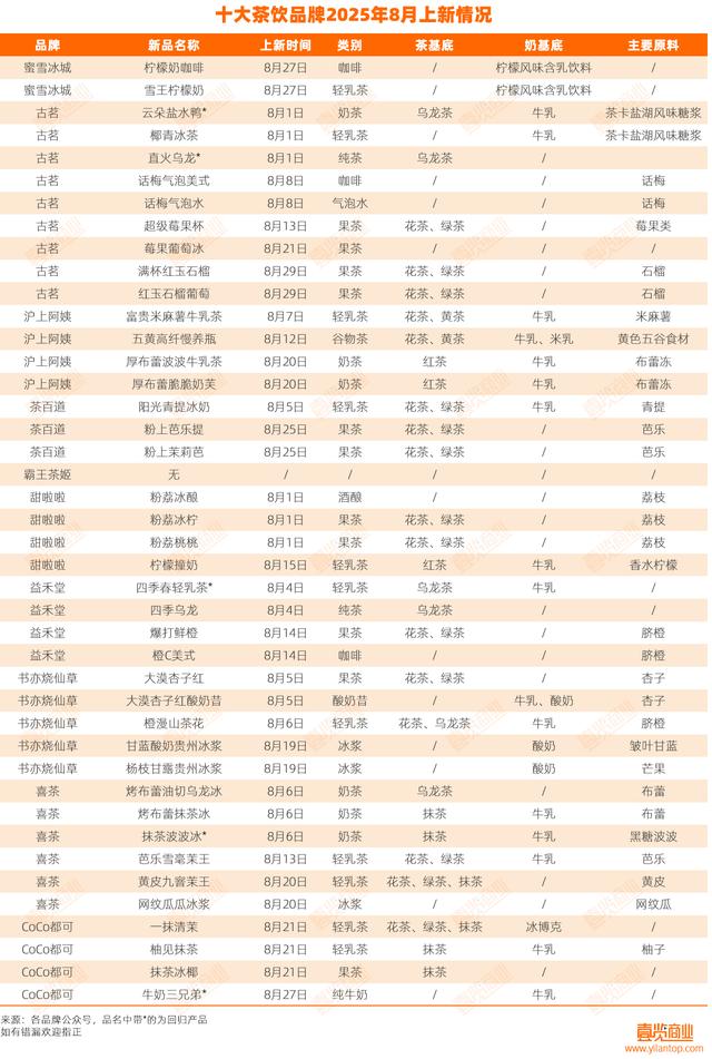 8月的茶饮新品,在季节交替与行业竞争的双重驱动下,呈现出清晰的发展脉络。