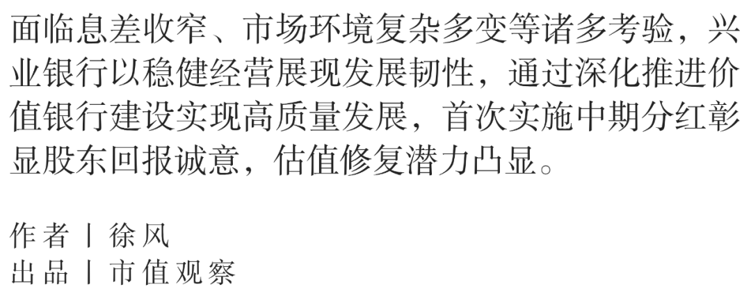 透过2025年三季度财报,兴业银行业绩彰显韧性,通过深化推进价值银行建设推动资产负债表优化的同时,首次实施中期分红提升投资回报。在基本面和市场共振下,该行正在迎来一场价值重估。