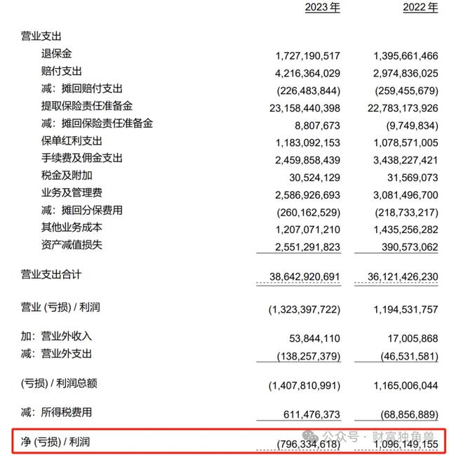 联合资信发布的信用评级报告指出,2024年前三季度受资产减值损失增加及保险合同准备金计量基准收益率曲线下行增提准备金等因素影响,营业支出上升,导致大额亏损。