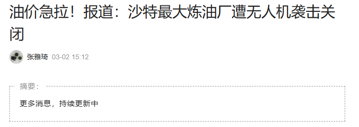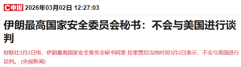 先来看美国和伊朗冲突的进展:早上有报道称,美国总统特朗普称对伊朗的军事行动可能持续四周左右,他还称伊朗新领导层希望恢复谈判,他已同意进行对话。伊朗外长也表示伊朗对任何有助于缓解紧张局势的努力持开放态度,但中午又有报道称伊朗最高国家安全委员会秘书阿里·拉里贾尼当地时间3月2日表示,不会与美国进行谈判。