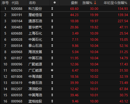 A股石油板块暴涨,中石油、中海油、中石化均涨停。