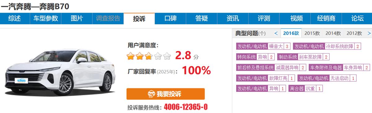 贝多商业&贝多财经查询“车质网”数据后发现,奔腾B70的用户满意度仅2.8分,有关“刹车泵故障”“变速器无法换挡”的投诉早有先例;另有专业人员称,去年某次ECU系统升级后,确实收到过关于巡航模式下刹车响应延迟的反馈。