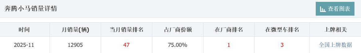 在85.5亿增资项目的助力下,一汽奔腾的新能源转型脚步虽然正逐步加快,但该公司依旧存在缺乏溢价空间的问题。一个直观的印证便是,2025年11月其旗下售价2万元起的A00级微型电动车奔腾小马销量占比高达75%。