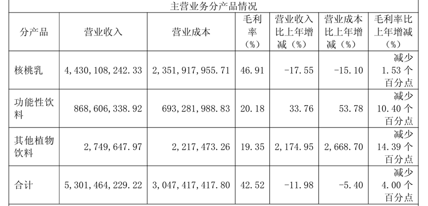 养元饮品在财报中解释,因2026年春节时点较上年度后置,公司核桃乳产品的销售旺季延后,导致本期营业收入较上年同期下降。