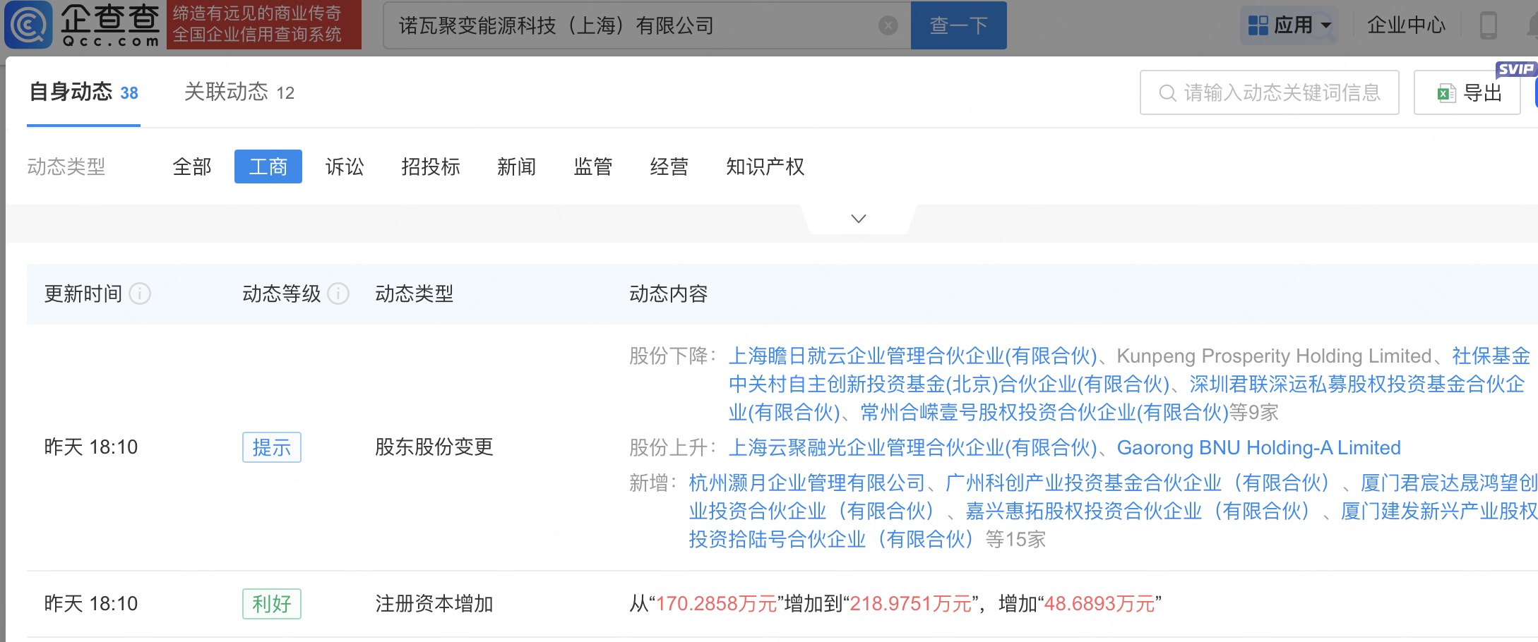 企查查APP显示,近日,诺瓦聚变能源科技(上海)有限公司发生工商变更,新增阿里巴巴旗下杭州灏月企业管理有限公司、上汽旗下河南尚颀汇融尚成一号产业基金合伙企业(有限合伙)等为股东,同时注册资本由约170.3万人民币增至约219万人民币。企查查信息显示,该公司成立于2025年4月,法定代表人为HOUYANG GUO,经营范围含新材料技术研发、核电设备成套及工程技术研发、发电技术服务等。公开资料显示,该公司专注于研发小型、分布式、模块化核聚变装置。