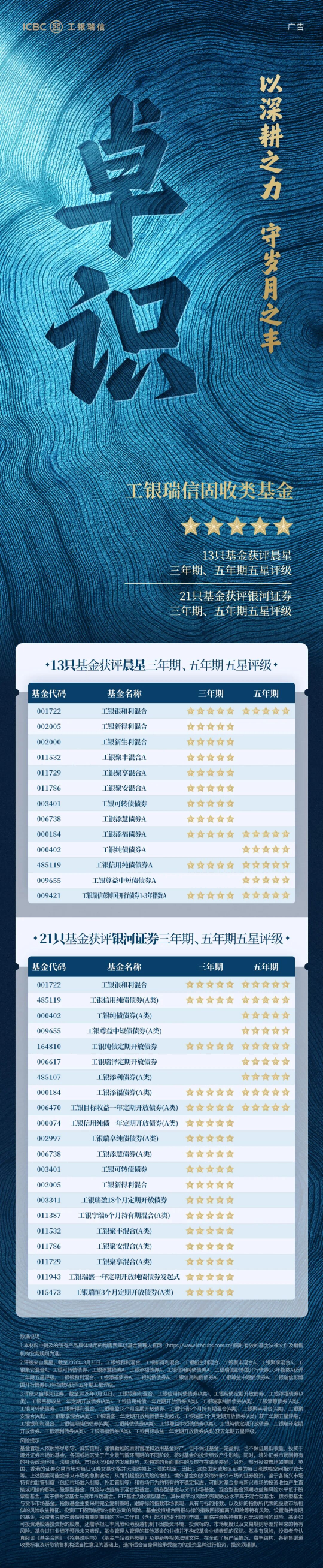 银河证券数据显示,公司旗下21只固收类基金荣获五星评级;Morningstar晨星中国数据中,工银瑞信共有13只固收类基金获得五星评级。