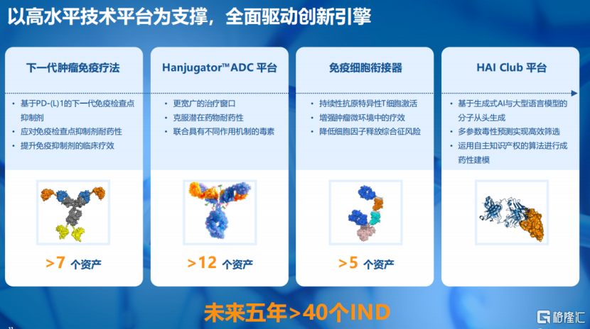 与此同时,公司搭建起包括PD-(L)1为核心的免疫检查点抑制剂平台、免疫细胞衔接器平台(如多特异性TCE平台)、Hanjugator™ ADC 平台、AI驱动的一站式早期研发平台HAI Club在内的多维创新平台矩阵,不仅保障了单个项目的研发质量与效率,更关键的是为打造具备全球竞争力的中长期创新管线提供了可持续的系统能力支撑,从而能够持续、高效地将前沿科学发现转化为具有临床价值的候选药物。