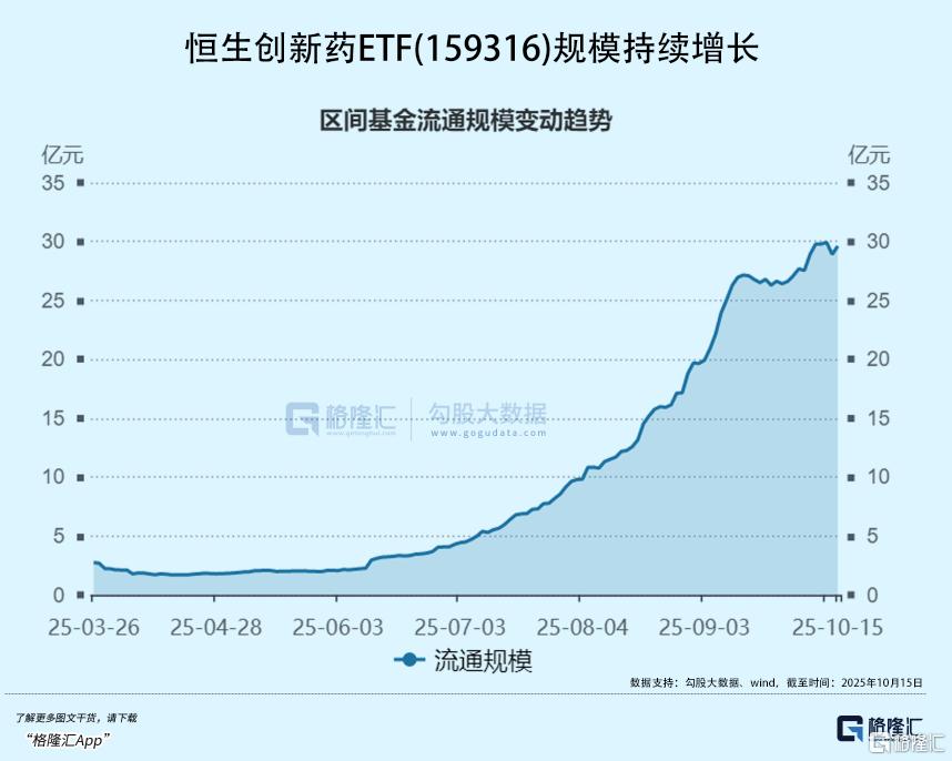 如持续受到资金青睐的恒生创新药ETF(159316),近20日资金净流入额8.49亿元,最新基金规模达29.61亿。
