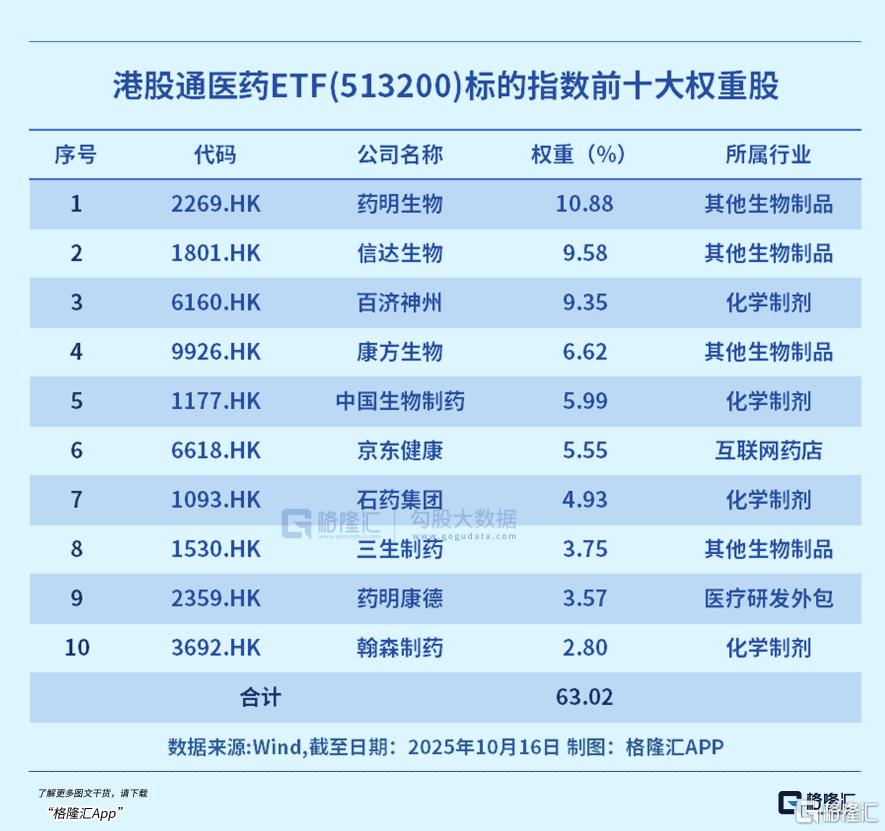 而港股通医药ETF(513200),跟踪的则是港股通医药指数,覆盖更广泛的港股医药龙头,包含创新药、医疗器械、医疗服务等关键领域,最新规模21.44亿元、在同标的ETF中居首;综合费率0.2%/年,同类最低,支持T+0交易。