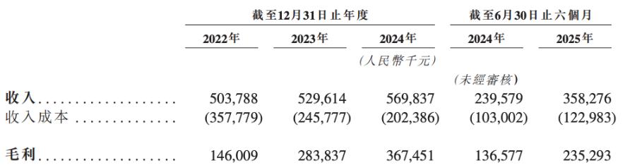 2022年至2024年,丰疆智能的总收入分别为5.04亿元、5.30亿元和5.70亿元,业绩整体呈稳中有增态势;2025年上半年该公司的收入为3.58亿元,较2024年同期的2.40亿元增长49.2%,成长性良好。